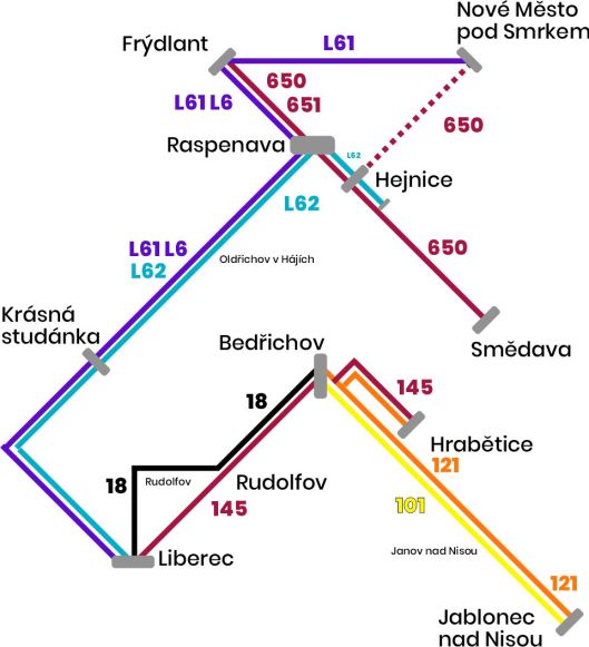L6, L61 platný od Liberec - Raspenava - Frýdlant (- Nové Město pod Smrkem)