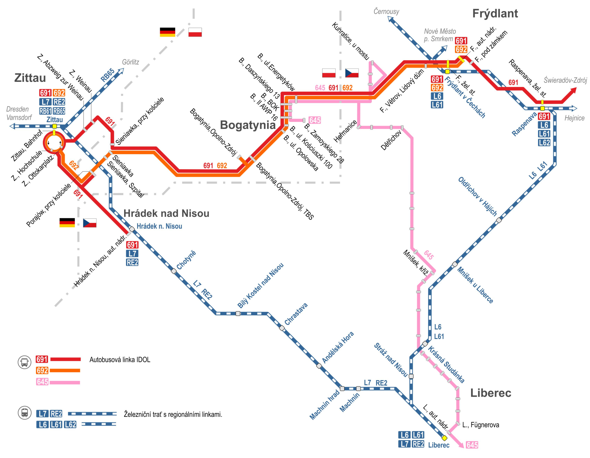 - 691 Hrádek nad Nisou - Zittau (DE) - Bogatynia (PL) - Frýdlant (CZ) - Świeradóv-Zdrój (PL)
